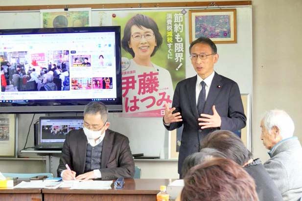 訴えを聞いた女性(69)は「年を取ると先行きが不安。物価も高いし、一番に消費税減税をやってほしい。必ず共産党に入れます」と話しました。