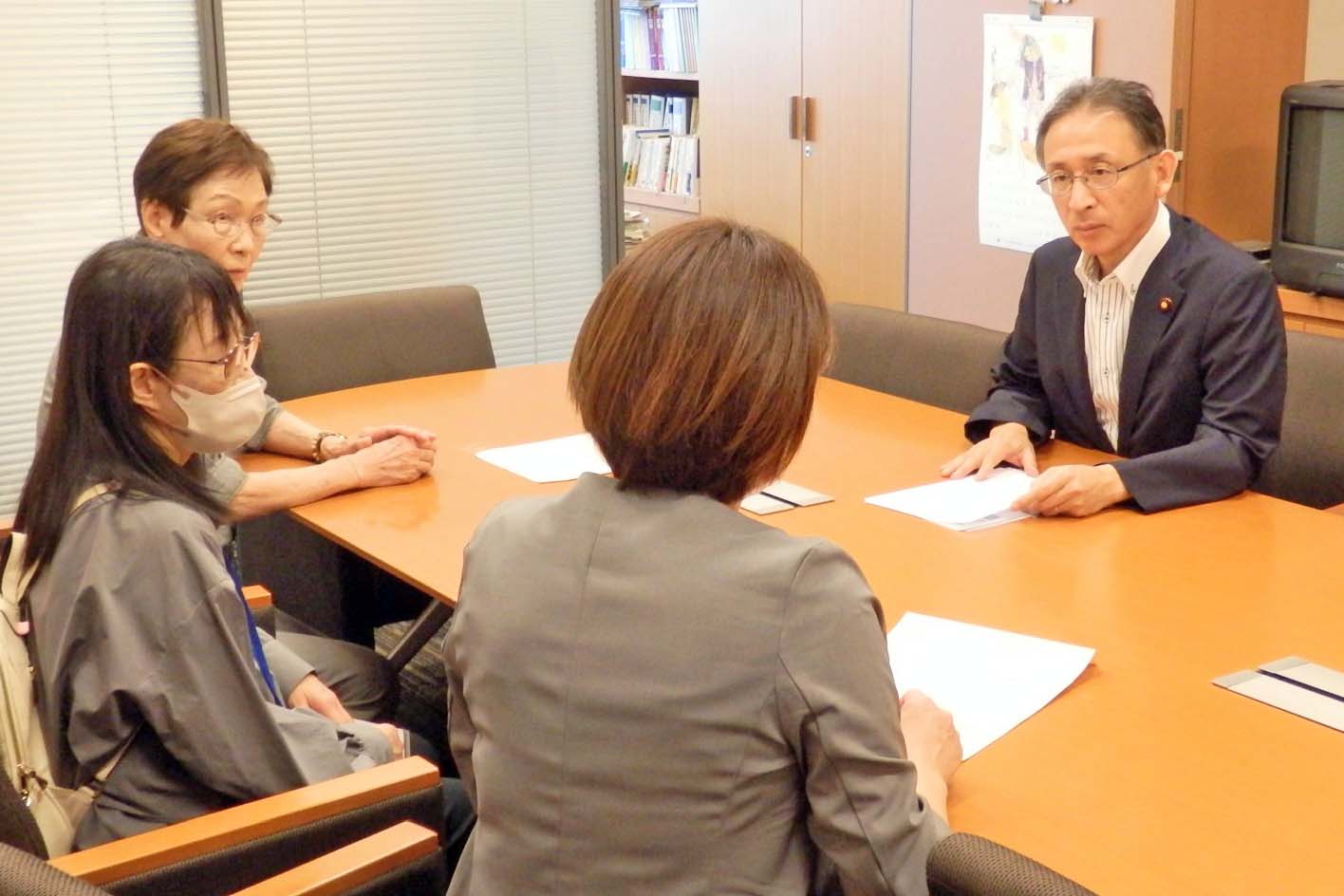 埼商連婦人部協議会の皆さんが所得税法第56条の廃止を求める要請行動で来室、懇談しました 2025/09/24 個人の尊厳と両性の平等に反する差別的税制である所得税法第56条は、きっぱり廃止を! 消費税は、5%への減税とインボイス廃止を! 共同の取り組みを広げましょう!