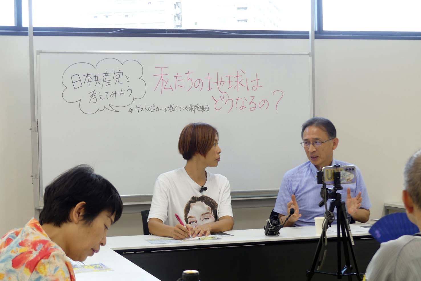 上尾市でまん中世代のつどい 2025/09/28 気候危機問題など交流。 気候危機の背景には、石炭火力や原発にしがみつくエネルギー産業など財界の要求がある。 CO2排出上位100事業所とその業界団体は、自民党に対し、年間5億円もの献金を行なっている。 気候危機は、利潤第一主義の資本主義が引き起こした社会的災害だ。
