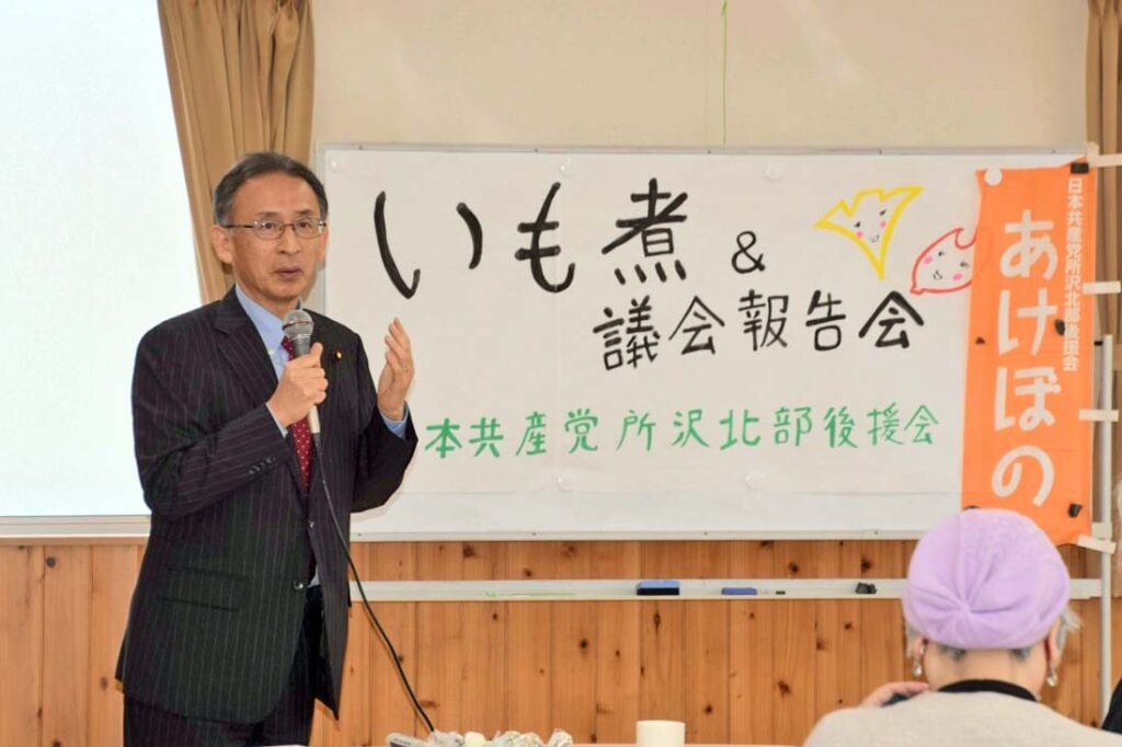 党所沢北部後援会のつどい 2025/11/02 自民党政治を追い詰める裏金追及の党と赤旗の奮闘を紹介。 暮らしを守る経済政策進める財源について、担税力のある大企業や超富裕層に負担を求める党の提案が大きな力を発揮していることを訴え。 参加者から高市政権の経済政策への質問や赤旗読者からのわが党への叱咤激励も。