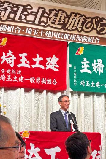 塩川氏は、埼玉土建が求めてきた住宅リフォーム助成制度は川口市で初めて実現し、全国にも広がったと紹介し、公契約条例制定を進める運動など「たたかう労働組合」の埼玉土建の役割を強調。「これらの要求運動の前進へ、共産党もともに頑張ります」と訴えました。
