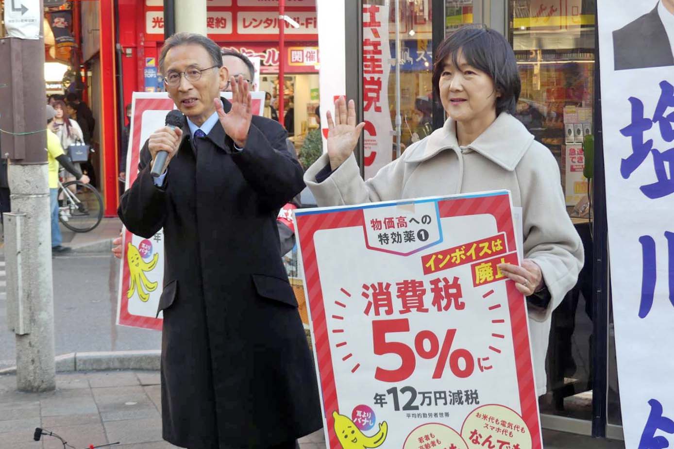 消費税減税ただちに/さいたま/塩川・梅村両氏が緊急宣伝