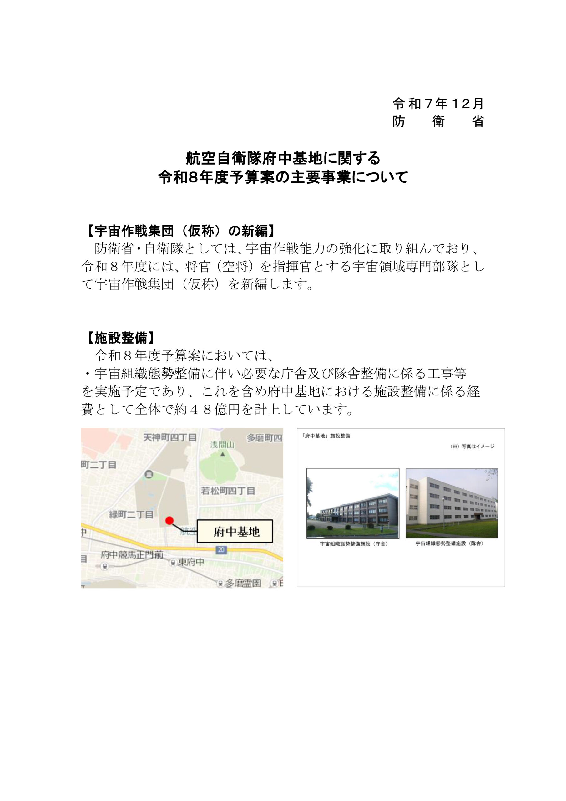 宇宙作戦集団の新編に伴う庁舎・隊舎の整備等47億円