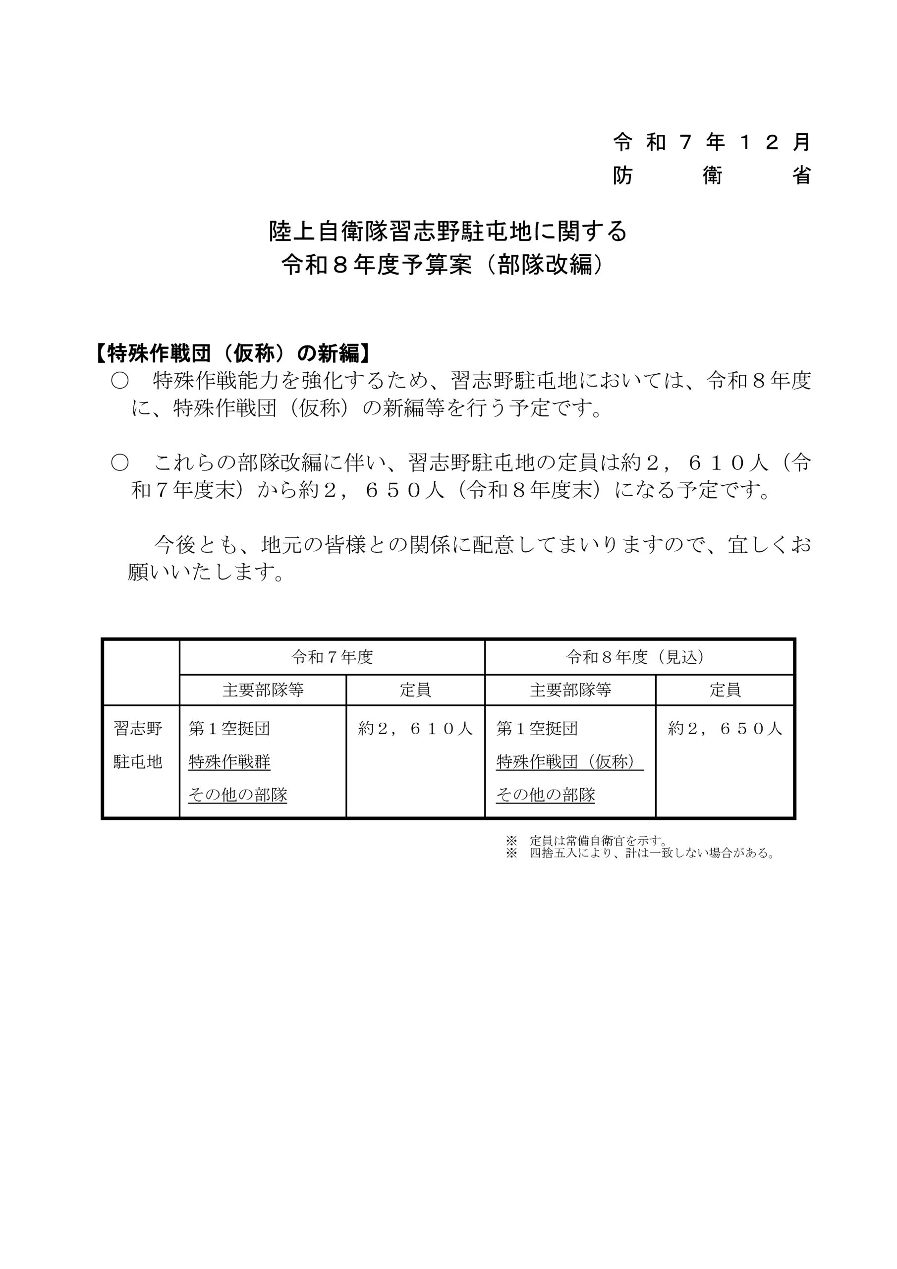 | 特殊作戦群(習志野) | 約3.2億円 |