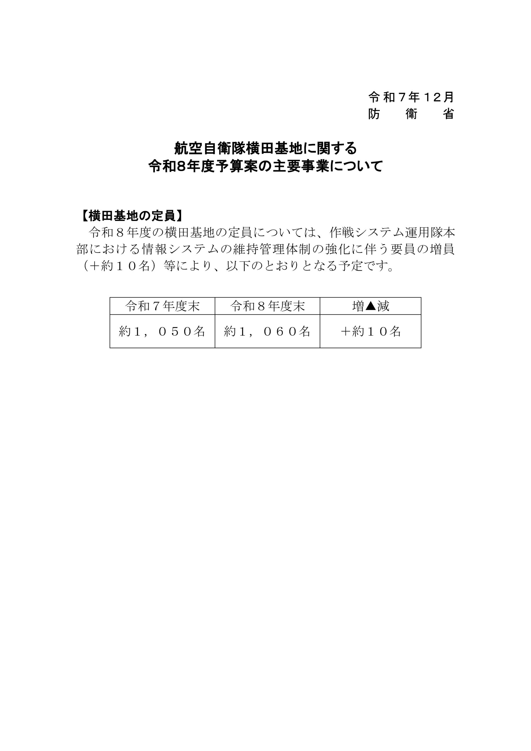 関東地方の主な米軍・自衛隊施設に関する2026年度予算案の内容が明らかになりました。