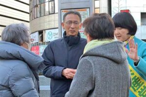 宣伝が終わってから足を止めた2人の女性は 「頑張って」と募金を寄せました。「高市さんの″わがまま解散”だと思う。共産党の議席が少ないとテレビで見る機会も減り、もどかしい。少しでも増やしてほしい」「物価高で年金だけじゃ暮らしていけない。年金生活者は怒っています」と話しました。