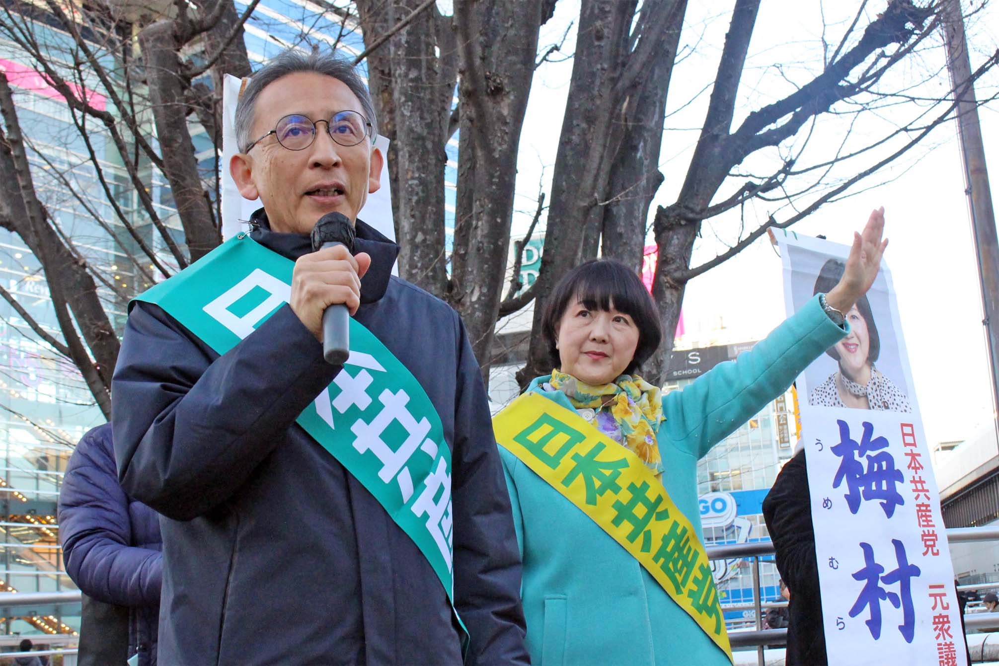 北関東ブロックの塩川鉄也、梅村さえこ両比例予定候補は、さいたま市のJR大宮駅西口で宣伝し、北関東で現有1議席の絶対確保、2議席の前進へ決意を語りました。