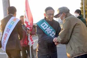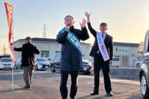 土浦市で稲葉ひでき茨城6区候補と訴え! 2026/01/27 ベネズエラ武力行使、グリーンランド領有発言など国際法違反のトランプ米政権に対して、一言の批判もしない高市政権でいいのか。 米国要求のGDP比5%の大軍拡・敵基地攻撃ミサイル配備・武器輸出解禁・非核三原則見直しの戦争国家づくりに断固反対を貫く。 9条活かした対話と包摂の平和構築の努力こそ。