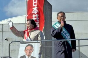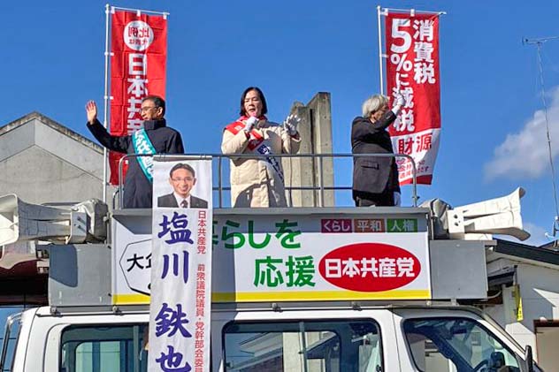 日本共産党の塩川鉄也衆院北関東比例候補は29日、栃木県内を回り、総選挙で党の躍進を訴えました。