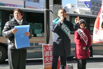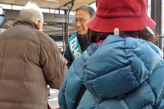 東武東上線志木駅(埼玉県新座市)での演説では、八潮市の道路陥没事故に言及。下水道の大規模化・広域化を進めた国の責任を国会で追及し、財政支援が実現するなど政治を変えてきたと紹介しました。