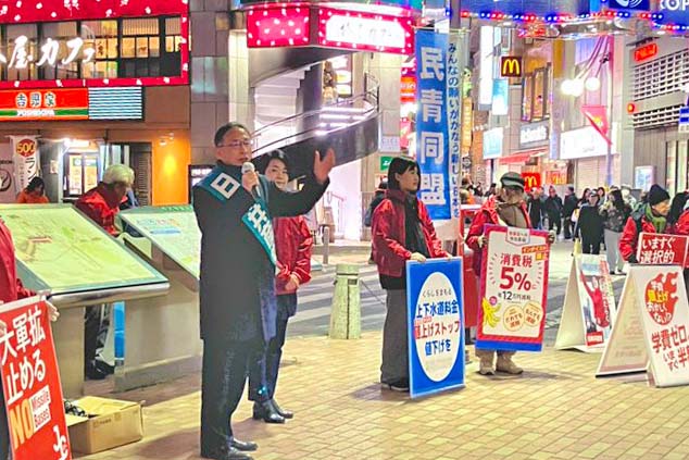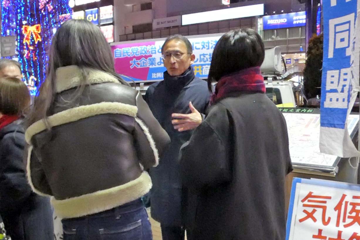 所沢駅で街頭トーク集会 2026/01/31 医療機関や障害者団体で働く人から仕事の大切さと大変さ、学生から学費の高さ、奨学金などについて質疑応答。 選択的夫婦別姓を実現してほしいという声も。 ボランティアで駆けつけてくれた若者二人「若い人も共産党を応援しているというのを見てもらいたいので来ました!」