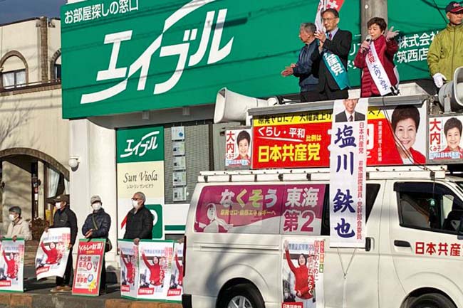 筑西市で大内くみ子茨城1区候補と訴え! 2026/02/02 「高市早苗でいいのかを国民が決める選挙」と言って国民に白紙委任を求めるのは、統一協会、裏金、消費税減税を語れないから。 「国論を二分する問題に取り組む」と言って、大軍拡、非核三原則見直し、改憲まで。 戦争国家づくりに日本共産党の勝利で審判下そう!