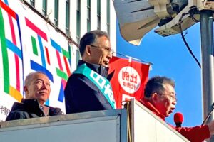 さいたま市・浦和駅前では、塩川比例候補が「企業・団体献金を受け取らず禁止の旗を掲げる共産党を伸ばすことが、自民党政治の闇と腐敗を一掃する一番の力」と訴えました。