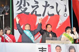 田村委員長は街頭で、各種情勢調査での高市・自民党の「多数」はハリボテであり、「必ず打ち破ることができる」と強調。「ブレずに市民の側に立ち続け、憲法を真ん中に共同を広げる日本共産党を、どうかのばしてください」と力を込めました。志位議長は「日本の政治は大きな歴史の分かれ目に立っています」「こういう時こそブレない政党が必要です。高市自民党に正面から対決する日本共産党への一票で、高市強権政治を止めよう、希望をもって暮らせる日本をつくろう」と訴えました。
