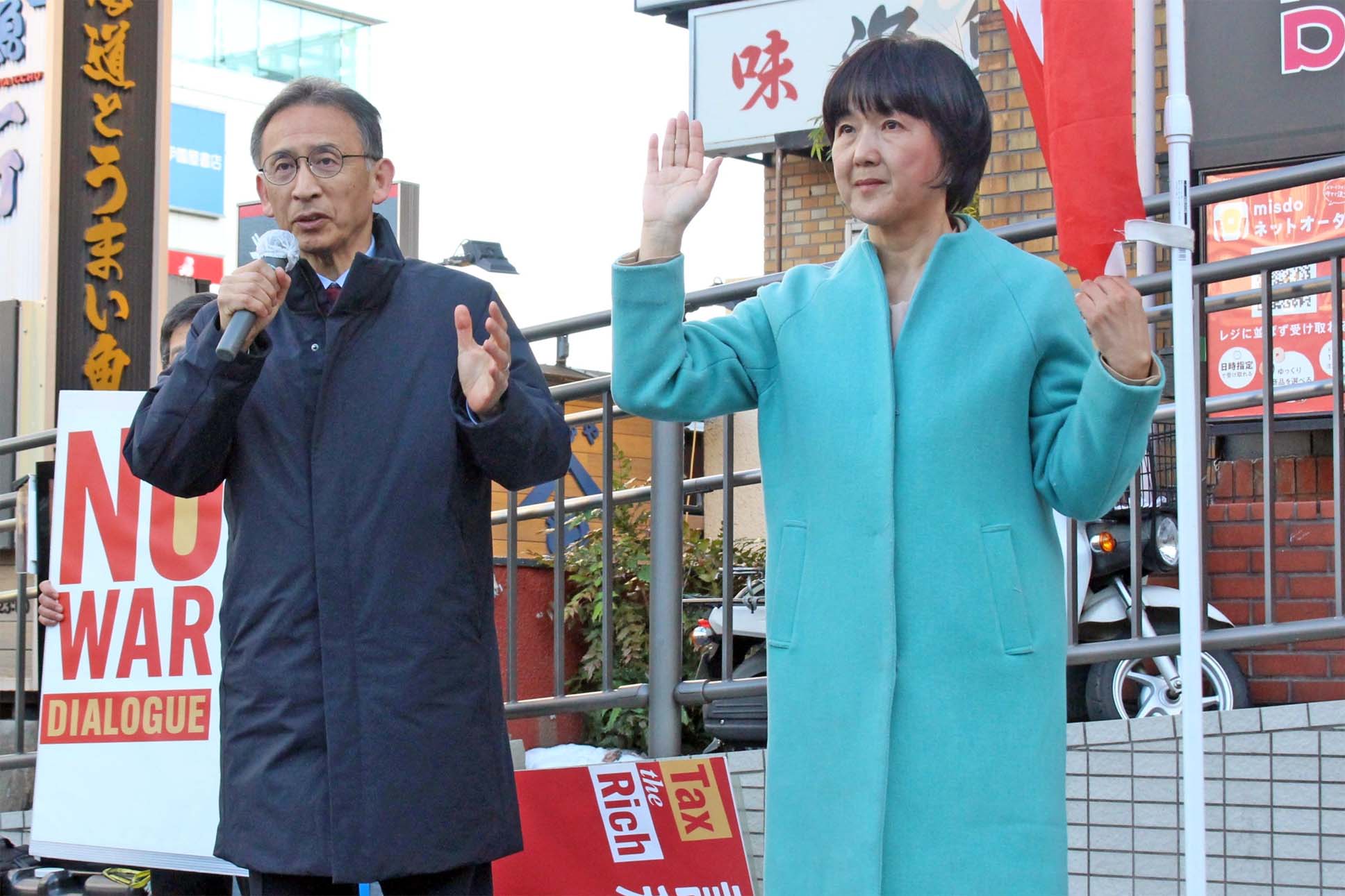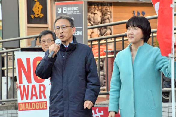 衆院比例北関東ブロックで10回目の当選を果たした日本共産党の塩川鉄也氏は9日、北関東比例候補として奮闘した梅村早江子氏とともに、さいたま市のJR浦和駅東口に立ち、総選挙の結果を報告する宣伝を行いました。