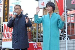 塩川氏は、高市早苗首相が街頭演説で大軍拡や改憲などの問題に触れないまま、これらを進めようとしていると批判し「国民は自民党に白紙委任したわけではない。国民の声を無視した政治を進める自民党と、断固としてたたかいぬく」と強調しました。