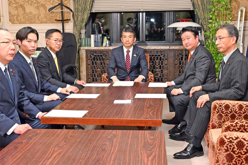 与党と坂本哲志予算委員長は野党の要求を無視して4~6日に「省庁別審査」を行うことを職権で決定しました。同理事会後、日本共産党、中道、国民民主党、参政党、チームみらいの国対委員長は会談を開き、自民党の日程案の白紙撤回要求で一致。私は「審議は始まったばかりだ。こんなやり方は前代未聞だ」と指摘。消費税減税やイラン攻撃、首相の訪米を前にした日米関係などについて「集中審議で深めるべきだ。首相が国会審議から逃げることは許されない。審議を通じて議論を深めていくことが国会の責務だ」と強調しました。