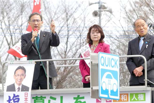 町議選の迫る栃木県高根沢町で森ひろ子町議と訴え! 2026/03/28 小中学校給食費無償化、就学援助の改善、防犯灯設置費と電気料金負担を自治会から町負担に、消防団の待遇改善や詰所維持改善を町負担にするなど豊かな実績。 こどもの国保税均等割ゼロ、都市計画税の廃止の実現を! 富の一極集中の是正で消費税減税を!