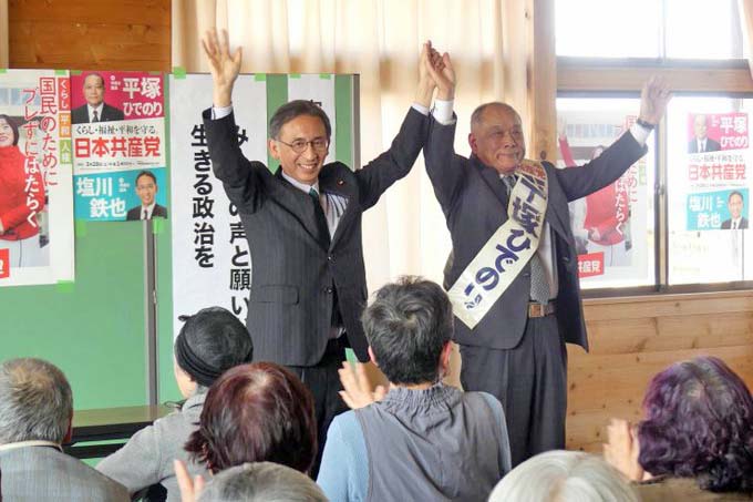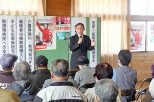 那須烏山市の演説会で平塚ひでのり市議と訴え! 2026/03/28 18歳までの医療費無料化、中小企業振興基本条例制定、ハザードマップ改良など災害対策で奮闘してきた平塚ひでのり市議。 議会になくてはならない議席。 治療を遠ざけることになる高額療養費・OTC類似薬負担増反対。 大軍拡・軍拡増税こそやめよ!