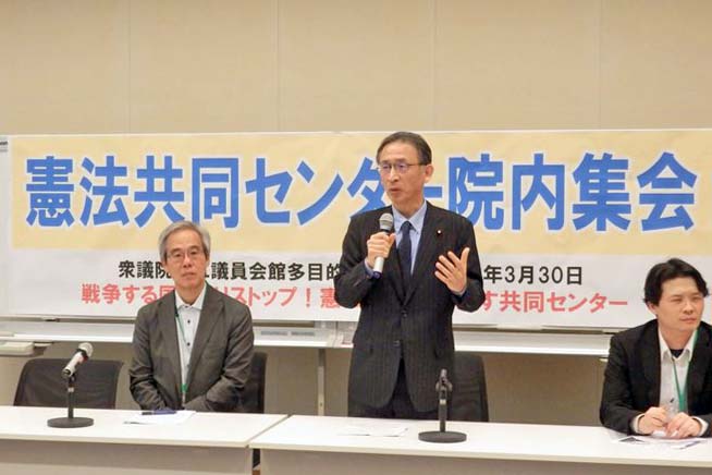 戦争する国づくりストップ!憲法を守り・いかす共同センター(憲法共同センター)は30日、衆院第2議員会館で集会を開き、「スパイ防止法」の狙い、どう対決していくかについて学習し交流しました。