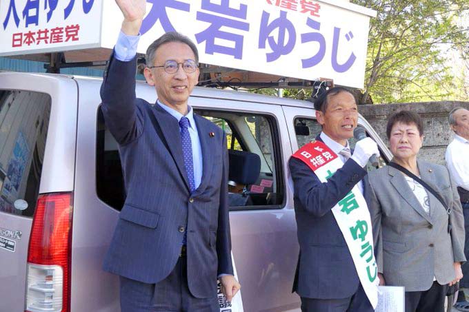 秩父市議選告示、大岩ゆうじ候補の応援に! 2026/04/12 秩父市党は、小中学校給食費無償化、修学旅行費補助などを実現。 4年間で3回の国保税値上げや水道料金36.1%値上げ押しつけには、きっぱり反対。 水道基本料金の無料化を! 国保税は引き下げを! 地域公共交通の充実、デマンドタクシーを全市で!