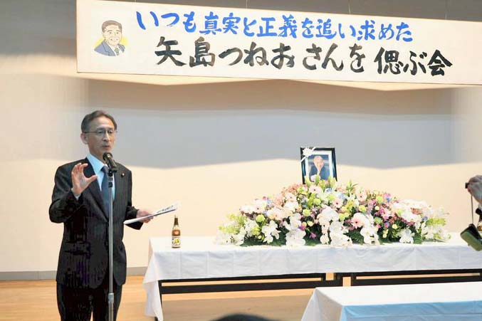 矢島つねおさんを偲ぶ会 2026/04/25 衆議院議員を4期14年務め、無駄なダムストップ、産廃不法投棄追及、テレビの字幕放送実現、豪雨災害の被災者支援など豊かな実績。 埼玉県立川越女子高の教員として、また治安維持法犠牲者国家賠償要求同盟や年金者組合での活躍など、矢島さんに感謝を伝える集いとなりました。